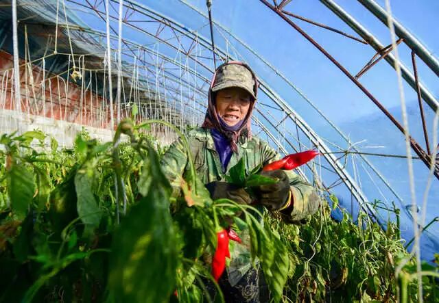 1月25日,“贫困户”潘素琴在温室大棚里劳作。新华社记者 连振 摄