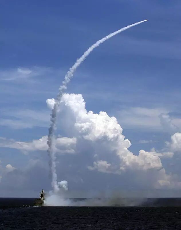 海军在海南岛至西沙附近海空域组织的实兵实弹对抗演练中,导弹护卫舰发射防空导弹(2016年7月8日摄)。新华社记者 查春明 摄
