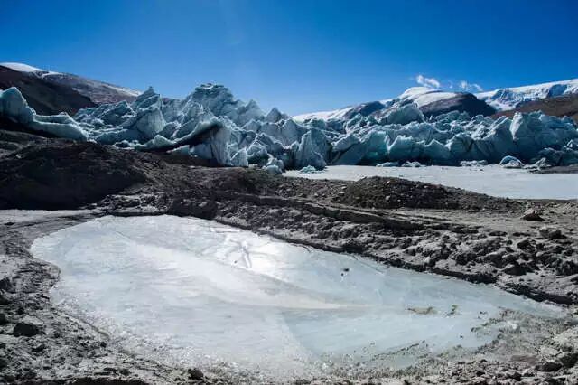 1月19日拍摄的岗布冰川一角。岗布冰川位于西藏浪卡子县与康玛县交界处,距离拉萨250多公里。这里海拔5500米左右,冰川形态各异,置身其中如同进入一处冰塔迷宫。新华社记者 普布扎西 摄