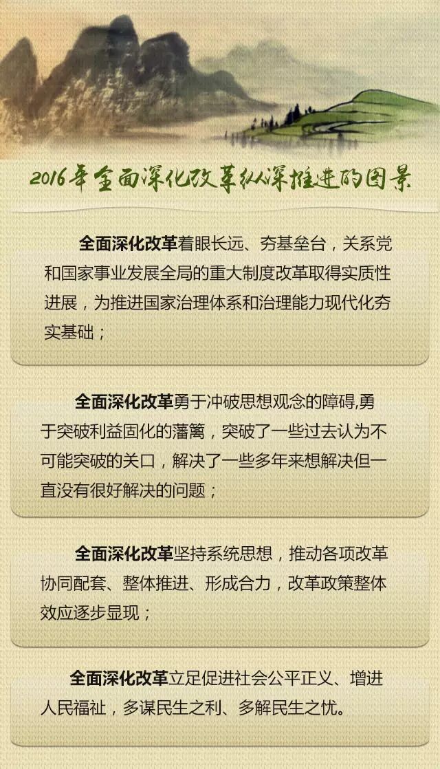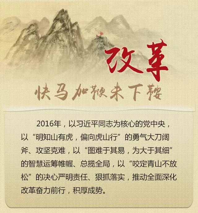 2016年岁末,习近平总书记在全国政协新年茶话会上,言简意明勾勒出过去一年全面深化改革持续强劲纵深推进的良好态势,充分肯定了一年来改革取得的成果。