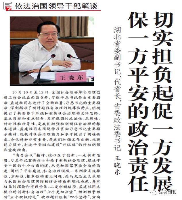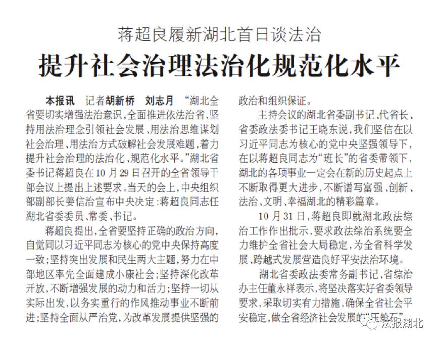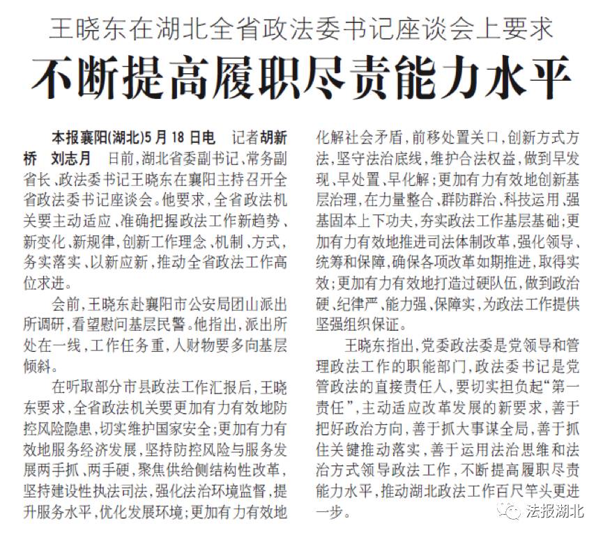 中部大省湖北经受住了多重考验:大灾之年实现大安,省委主要领导平稳顺利接替,全省政法综治各项工作步入“高位求进”新阶段。