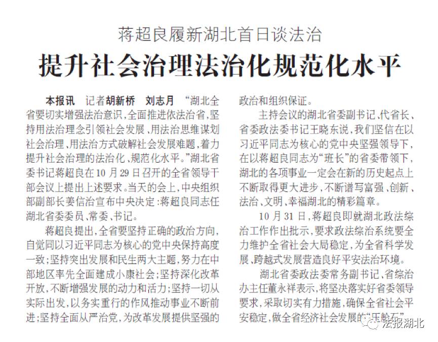 春节之后,湖北省委书记蒋超良在其主持召开的新年首个省委常委会会议上提出要求。