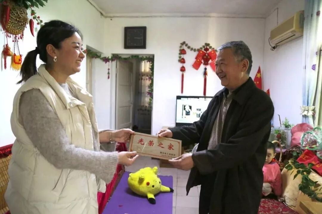 近期,社区在陆续为退伍军人授予光荣牌,刘扬给德胜街19号楼-110的居民孙哲送去了光荣牌,老人非常感激。