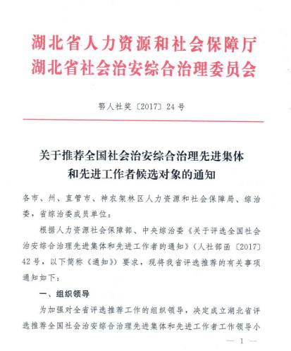 根据人力资源社会保障部、中央综治委《关于评选全国社会治安综合治理先进集体和先进工作者的通知》(人社部函〔2017〕42号,以下简称《通知》)要求,现将我省评选推荐的有关事项通知如下: