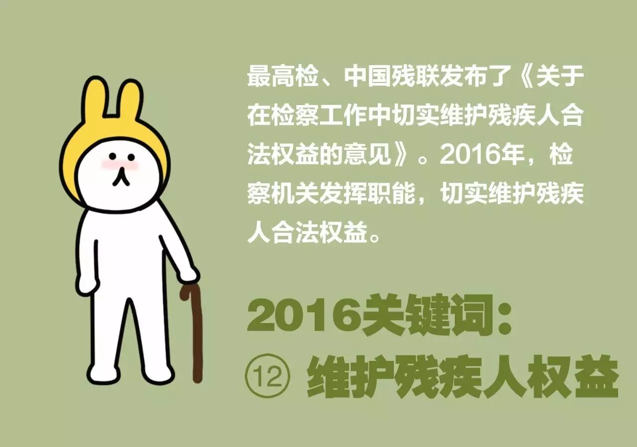 2016年,成都锦江公安、检察机关查办逼迫残疾人乞讨幕后团伙,江苏丰县检方查办残联领导受贿案,山东滕州检察院为残疾当事人建立“绿色通道”等,都体现出检察机关依托检察职能,切实维护残疾人合法权益的努力和成效。